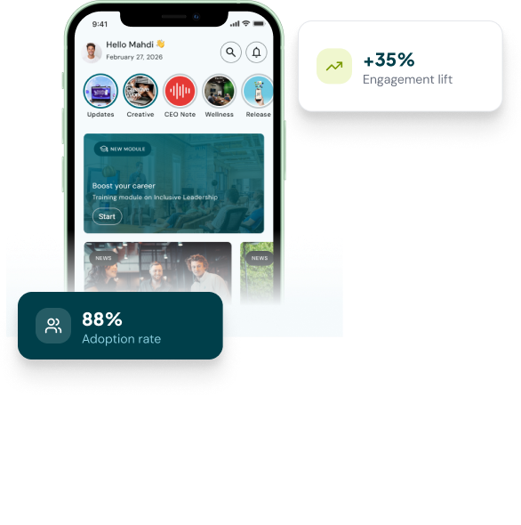 Foster a culture of belonging through interactive content, feedback loops, and real-time social recognition that resonates.
